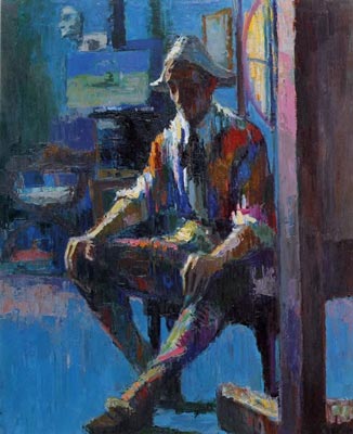 Arlequin à la pose (huile sur toile) - 65x54 cm