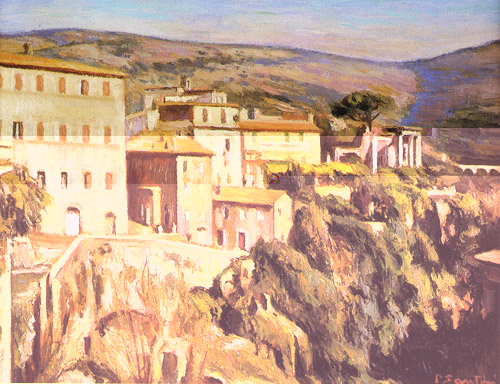 Paysage de Tivoli - la Cittadella 1978. Huile sur toile 46 x 61 cm. A gauche la maison familiale