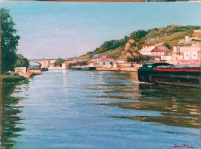 Le Loing à Saint Mammès 1985. Huile sur toile 54 x 73 cm