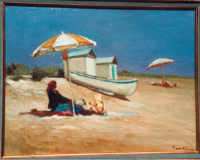 Le parasol jaune 1980. Huile sur toile 50 x 65 cm